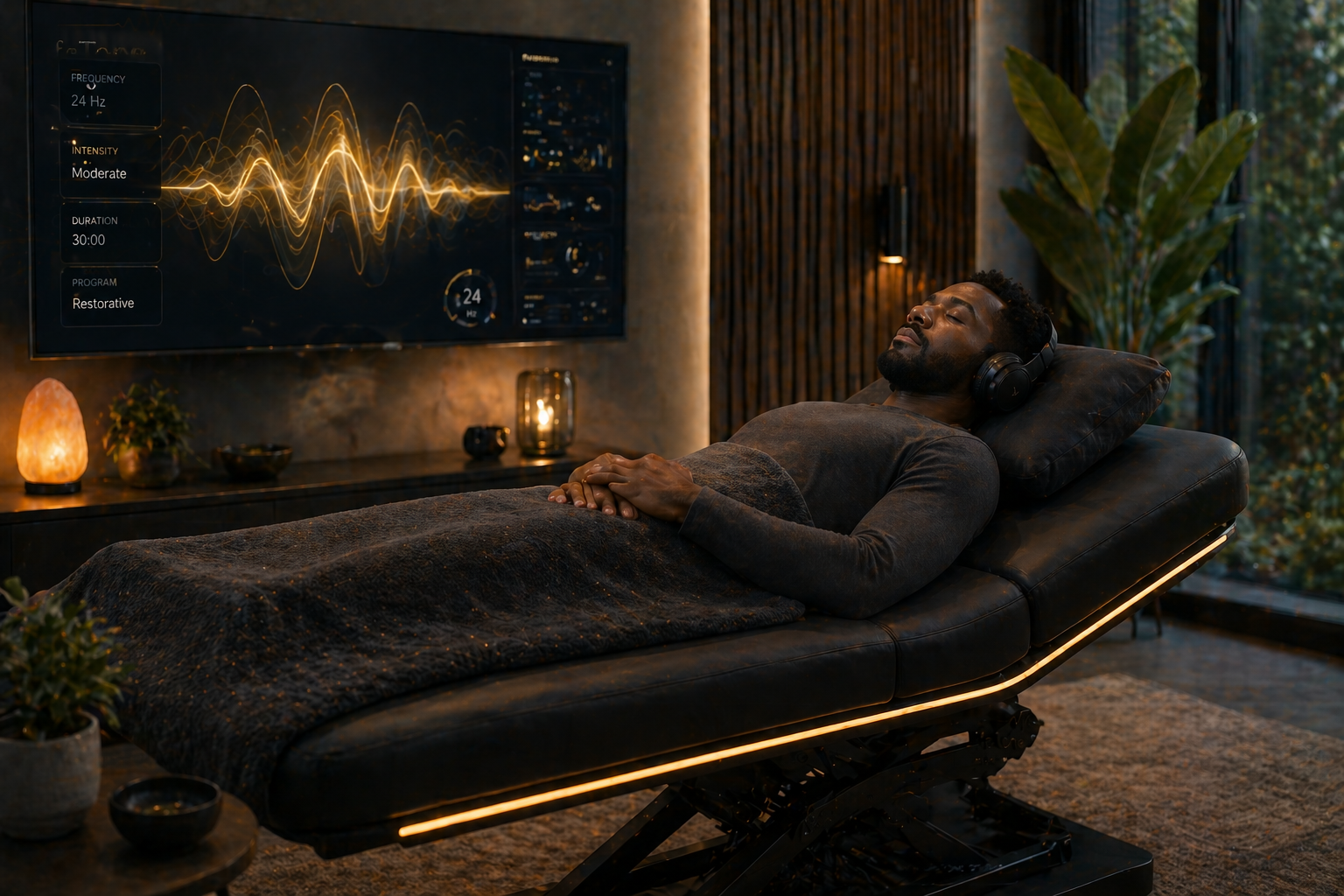 Sessions are designed to create a full-body sensory experience that may encourage relaxation, nervous system downregulation, physical recovery, and restorative balance.